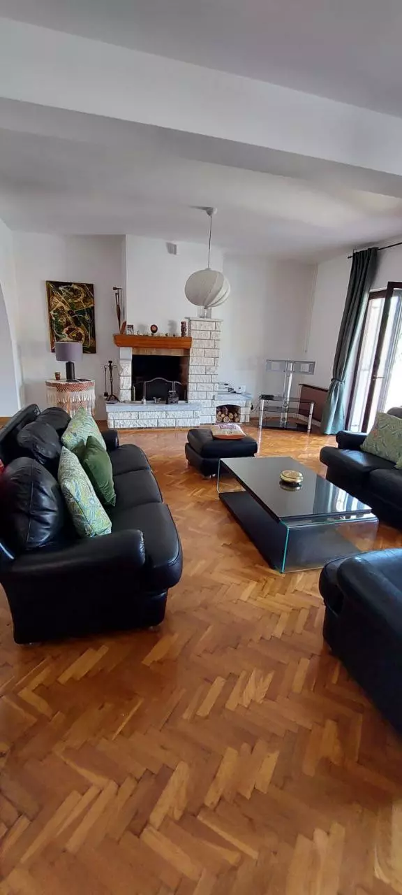 The living space is 150 m2 offering two bedrooms, two bathrooms on the first floor with access to the terrace. On the ground floor, a bright living room with fireplace, kitchen with dining room which opens onto the swimming pool and the WC.